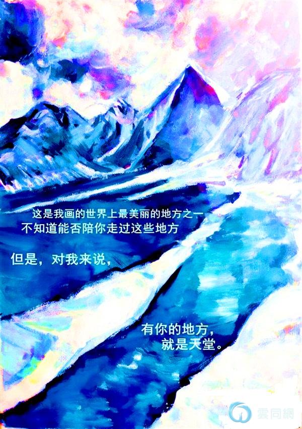 这对新人有很多的理想,想去很多美丽的地方。新郎说,现在呢还没有那个条件,所以把那些景色都画了下来。