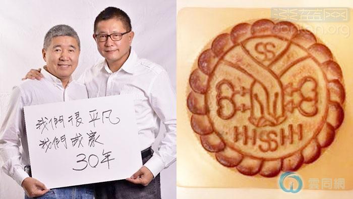 世界日报报道,这款喜饼上有何祥和王天明的姓氏缩写以及男男、女女性别符号,还有一双交握的手,诠释同性之间的爱情,可以作为同性伴侣周年纪念饼或伴手礼。