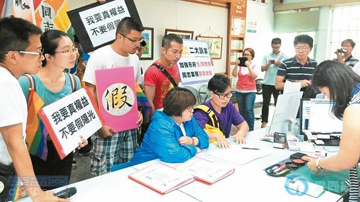 联合报21日报道,高雄女子阿霏和同性伴侣昨天前往凤山区第一户政所申请注记,却发现文件没有加盖官方印章,注记后也无法取得证明。两人对市政府的善意表示肯定,但考虑到“阳光注记”没有任何法律权益保障,而且担心隐私泄露,因此决定不注记。