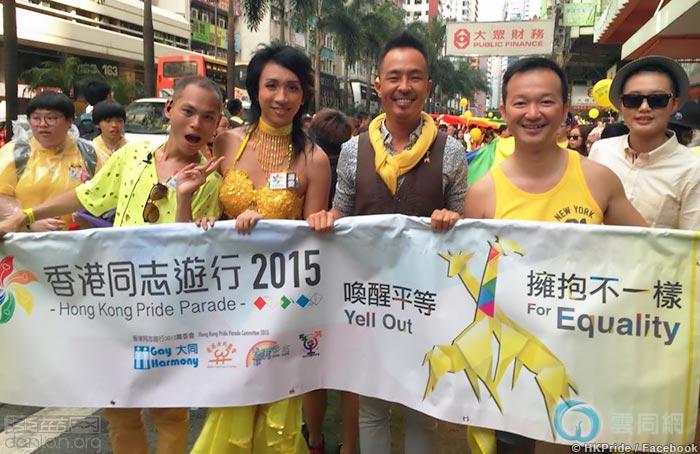2015香港同志游行11月7日下午举行,主办方估计约9500人参加,包括香港平机会主席周一岳、“彩虹大使”张超雄和梁梓禧、立法会出柜议员陈志全,以及11个驻港领事馆代表。