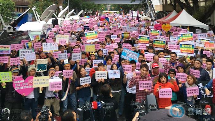 数千挺同人士包围“立法院” 要蔡英文落实选前承诺
