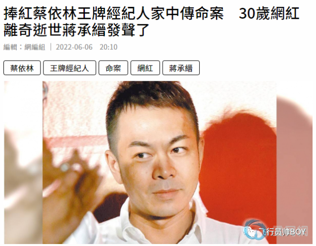 据台媒6月6日报道,知名经纪人蒋承缙邀请一名30岁男网友回家过夜,结果男网友意外猝死,目前正在等待警方解剖出结果。6月7日,媒体发现这枚意外猝死的男性是一名男网红。