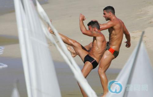 瑞奇·马丁与男友海滩瑜伽嬉戏照曝光
