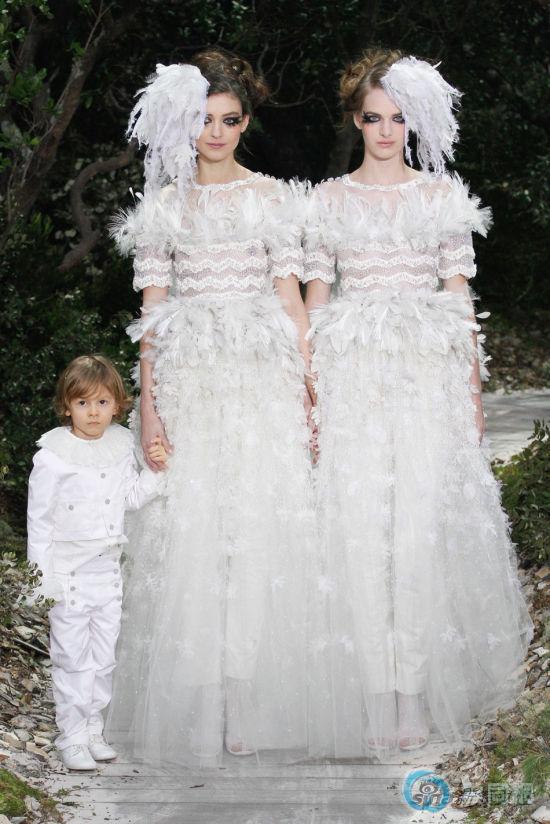 这让我们不得不想起本季Chanel高级定制秀场,设计师卡尔就安排两个“新娘”手牵手拉着一个小孩结束大秀,卡尔希望通过这种方式呼吁同性恋婚姻在法国应该获得的同样的尊重和保护。