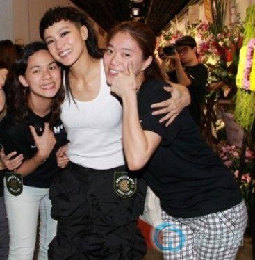 何韵诗《Memento Live 2013》前晚在红馆举行第二场,好友黄耀明、卢凯彤、C AllStar、赵式芝、杨如芯,以及同阿诗合演舞台剧《贾宝玉》的十二金钗成员前来捧场,而绯闻密友邓九云继首晚捧场看得劲high后,昨晚继续捧场,他还同阿诗及其他金钗,在后台揽着合影,非常开心,而阿诗看到好朋友挺场,也表现得劲风骚。