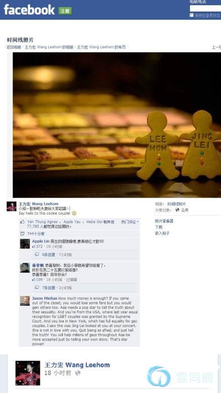 美籍华人歌手王力宏在脸书晒夫妻饼干大秀恩爱,结果外国男粉劝他出柜:从美国的同性恋政策,明星的责任,到眼神分析,苦口婆心循循善诱晓之以情动之以理。。。
