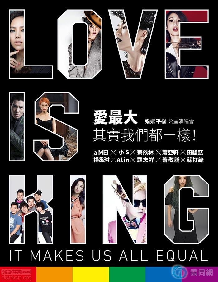 8月1日晚至2日凌晨,集结逾10组巨星的公益演唱会“爱最大,其实我们都一样”在台北小巨蛋举行,张惠妹、苏打绿、萧亚轩、萧敬腾、罗志祥、小S、杨丞琳、黄丽玲A-Lin、田馥甄、蔡依林等艺人无偿演出,为婚姻平等发声。同志社交软件Blued的工作人员早早抵达小巨蛋,向2700多万用户分享盛况。