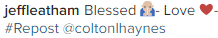 杰夫很快转发了照片和帖子,同时留下爱的文字。