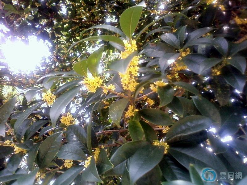 顺着路边的小道进入园林,那一片种的全是桂花,微风拂过那甜美的桂花香扑鼻而来,那金灿灿的小花星星点点的洒落在绿叶丛中毫不起眼。这寻常的小花虽无艳丽的姿色、无耀眼的花朵、无浓郁的熏香,但小巧精致的花朵温婉纤巧,上天赋予它的素雅清淡的香味却能沁人心脾。