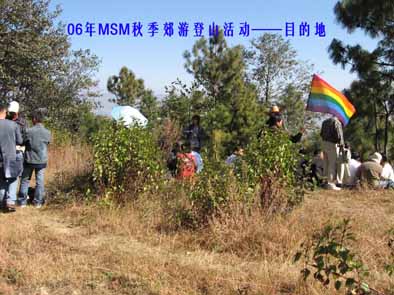 小结; 12月1日由大理好朋友工作室组织,云南省健康教育所资助,举办了大理地区MSM第一次户外健康活动。此次活动吸引了大理地区众多的MSM人群,包括周边县市的朋友以及外国友人。早晨时间不到报名的朋友就都到达了好朋友健康会所,并在会所内结好对子,9点一行人浩浩荡荡举着彩虹旗出发了。进山的时候我们为每位朋友交了十元的环境保护费。在山脚随着学忠的一声号令,事先结好对子的朋友就开始了登山比赛。刚开始有的朋友登山速度非常快有的非常慢,但是随着山势的逐渐陡峭,开始登山慢的朋友反而占据领先优势。最后我们在中和峰顶为前三名登山队颁发了奖品。此次活动朋友们表现出了前所未有的热情,并表示此种健康、积极、向上的体育活动应多举办。此次活动超过了预期效果,圆满成功。
