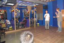 白天的培训结束后,来自各地的志愿者骨干与开远同志、拉拉等在对半开举办了一个小小的活动,活动中进行各种宣传预防艾滋病的人物扮演游戏和知识抢答。回答正确的朋友分别获得了来“美国家庭健康国际”制作精美的水钻红丝带胸针、还有云南省健康教育所提供的优质润滑剂、手机挂件、新疆雪莲工作组提供的帅哥挂历等。晚会上还有来自开远的学生同志、拉拉、哈尼族歌手为大家演唱了动听的歌曲。其中哈尼歌手的原声态“祝酒歌”更是引来一片喝彩声。