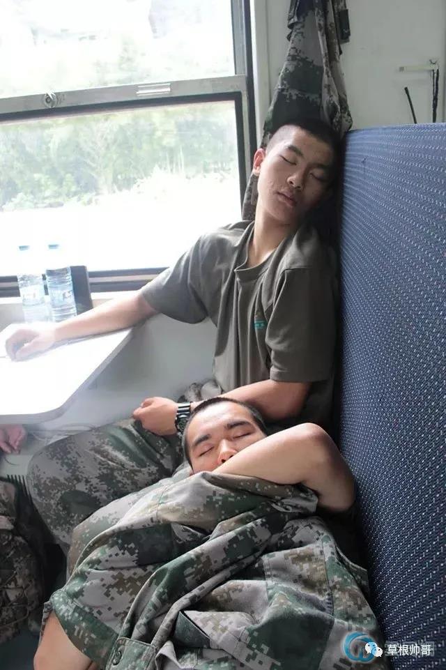 火车上偶遇一大波帅气的兵哥哥,他们太累睡着了