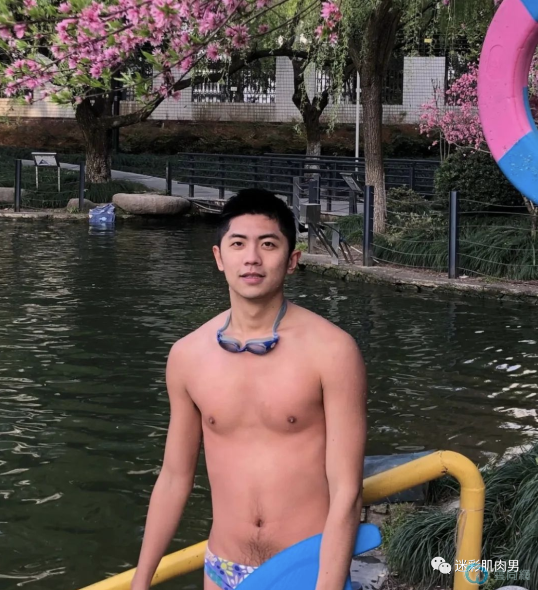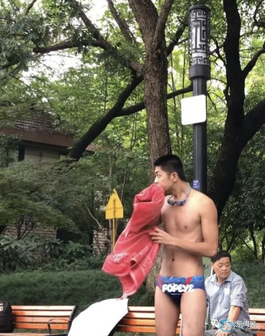 2022横渡钱塘江的肌肉男来了,大胸肌小泳裤太..