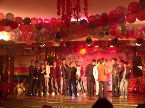 2006年12月23日晚,来自云南各地的300余名朋友聚集在昆明某酒店的大宴会厅里,共同迎接圣诞的到来。这次晚会是由云南省健康教育所七彩天空工作组和彩云天空云南同志网共同举办的。多年以来两家合作举行过多次大型活动,得到同志朋友们的广泛支持和热烈响应。23日的圣诞晚会更成为辞旧迎新,献给2006年的最后一道靓丽风景线。