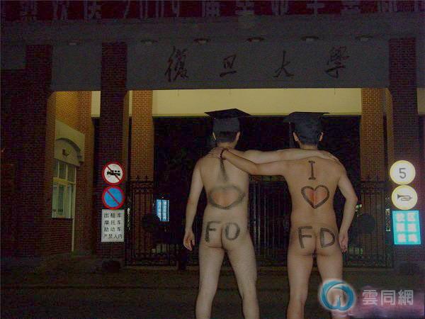 继“大学毕业生集体恶搞学士服”和“大学男生妩媚毕业照”之后,知名学府复旦大学校园内,出现了更为疯狂的一幕,两名复旦学生头戴学士帽裸奔庆祝毕业。该图文帖被发表在网络上后,被网友转发至各处,引起网络热议。