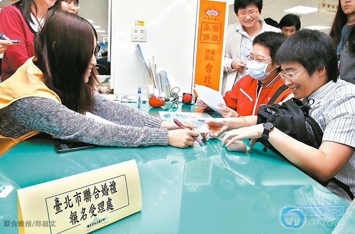 联合晚报3月23日报道,台北市政府各区公所23日开始受理联合婚礼登记,女同性伴侣小丁和Ray上午前往中正区公所报名参加,希望台北市长柯文哲证婚。中正区公所表示将在4月1日前回复,即使否决也会以书面形式详述理由。