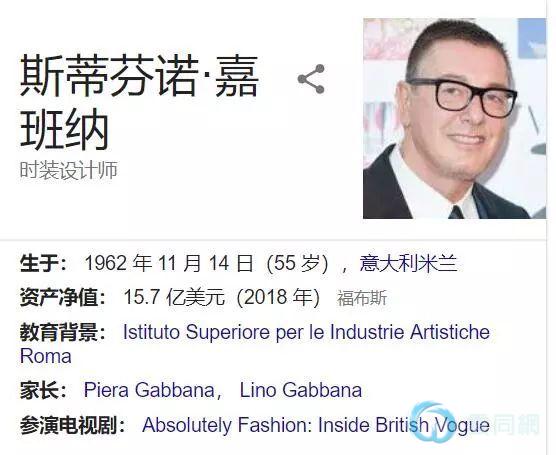 因为Stefano Gabbana身为奢侈品牌创始人拥有15亿美元的资产。